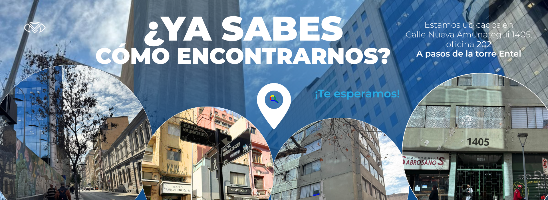 Estamos ubicados a una cuadra del metro moneda y la torre de Entel, en el centro de Santiago.